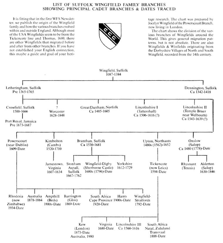 The Wingfield Family Society is a 501(c)7 nonprofit organization dedicated to honoring the historic heritage of the Wingfield Family, through genealogical research, publishing and travel to Wingfield historical site.